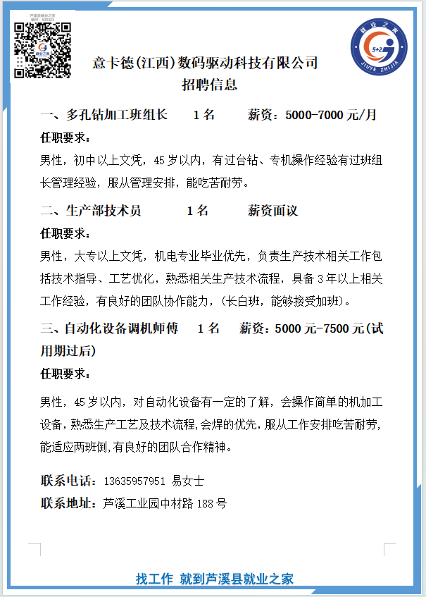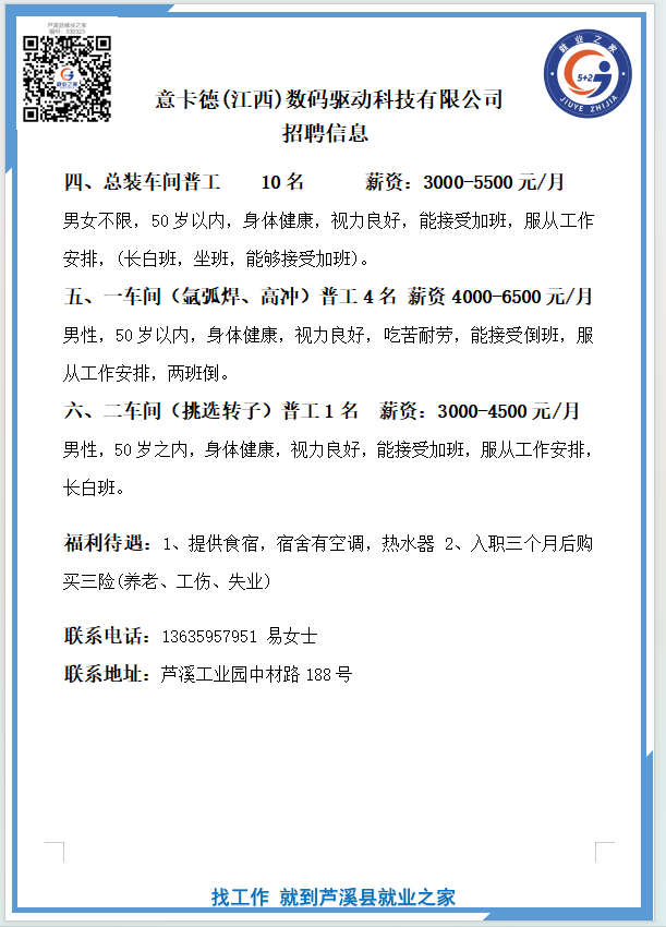 意卡德(江西)数码驱动科技有限公司招聘简章-资讯信息-萍乡市人力资源网
