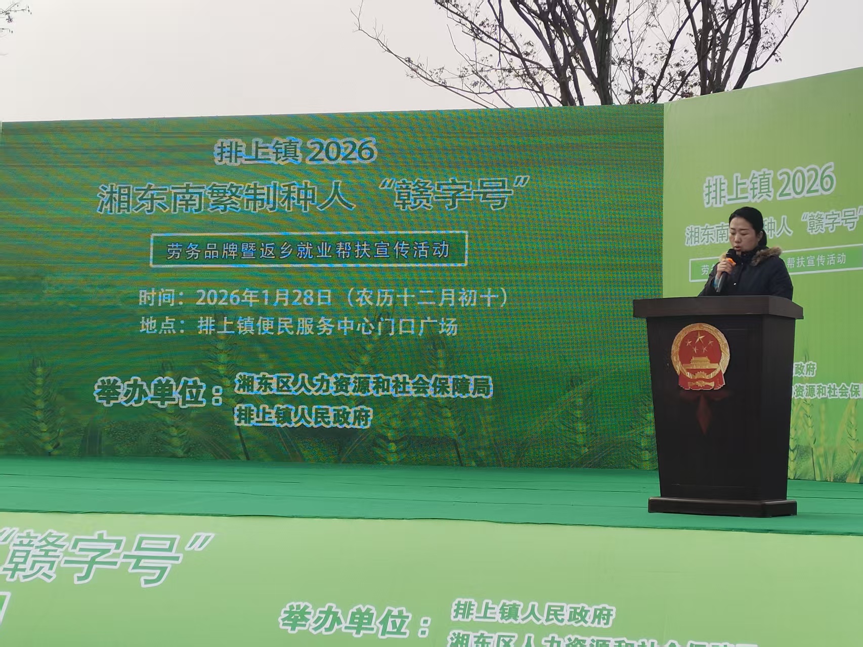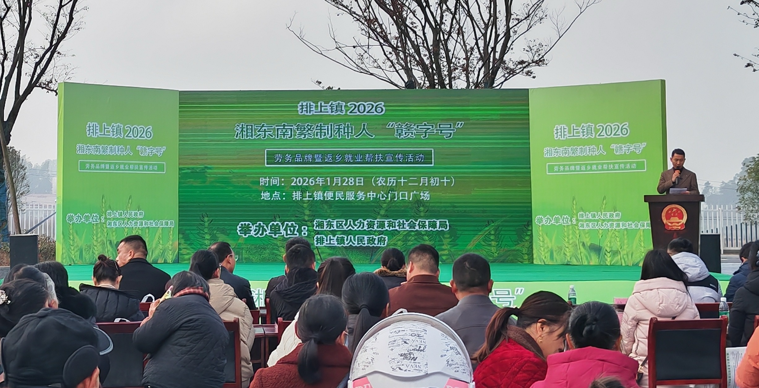 为深入贯彻稳就业保就业决策部署,精准对接企业用工需求与劳动者就业意愿,持续打响“湘东南繁制种人”劳务品牌,1月28日,排上镇2026年“湘东南繁制种人”劳务品牌暨返乡就业帮扶宣传活动在镇便民服务中心门口广场顺利举办。本次活动由排上镇人民政府、湘东区人力资源和社会保障局联合主办,以“春风送岗促就业南繁制种助振兴”为主题,为辖区群众搭建了高效便捷的就业供需对接平台,切实将惠民服务送到群众家门口。
