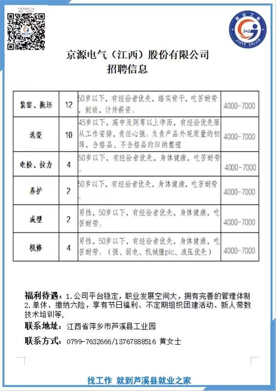 京源电气(江西)股份有限公司是一家集高压、特高压电瓷产品研发、生产、销售与服务于一体的综合型电力服务企业。公司成立于2021年,总部位于“中国电瓷之都”——江西省萍乡市芦溪县电瓷核心产业区,是华中地区电瓷产业的标杆企业。我们秉持“匠心铸品质、专心做品牌、诚心求共赢”的理念,致力于为全球电力、轨道交通、新能源等领域提供安全、可靠、环保的高性能电瓷解决方案,贡献中国智慧与中国力量。随着公司自动化生产线项目的推进与投产,现招聘如下岗位: