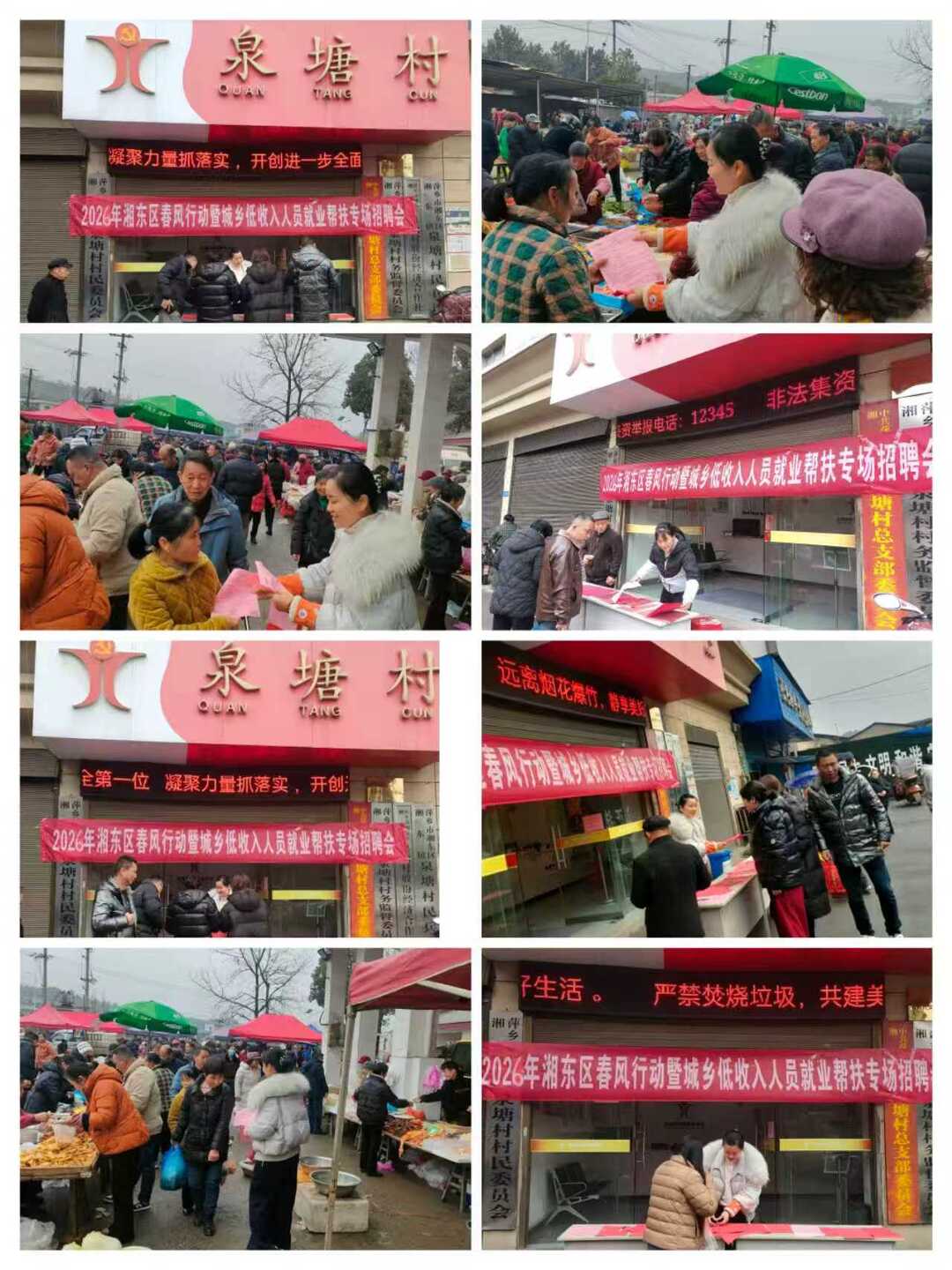 2026年春节前,湘东镇积极响应就业主旨,陆续在五里村、河洲村、美建村、道田村、黄花村、泉塘村等地开展“春风行动”暨返乡农民工就业帮扶系列招聘会,为归乡游子铺就温暖就业路。